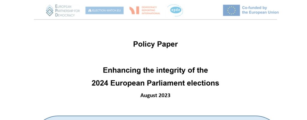 Brussels, 28 August 2023: Election-Watch.EU (EW), together with the European Partnership for Democracy (EPD), Democracy Reporting International (DRI), and the European Platform for Democratic Elections (EPDE) published a Policy Paper to the upcoming European Parliament elections in June 2024. The findings and recommendations are outlined in four chapters: 1) Equality and Inclusion, 2) Transparency, 3) Accountability, and 4) Risks and Opportunities.
